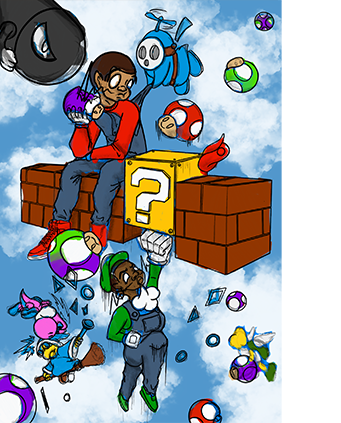 "Everything I create is meant to make others feel seen and less alone [...] My work ranges from portraiture and collage exploring the Black community’s relationship with popular media (manga, anime, comic books) to colorful illustrative paintings of characters experiencing varying degrees of saddening situations.